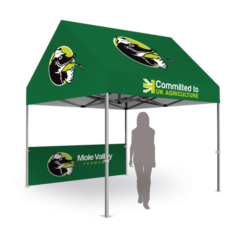 Our Classic Plus Cabin Package includes full-color sublimation printing on all peaks, valances, walls, and choice of frame. Made from 600D polyester material with PVC lining, our canopies come with heat-sealed seams, reinforced contact areas, and are 100% flameproof & 100% water resistant.