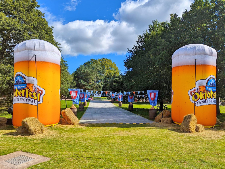 Our giant Oktoberfest Beer Steins have been a very eye catching addition to Alton Towers September / October seasonal promotions over the past couple of years. With internal LED lighting running around the inside of the custom inflatable Beer Steins (inflated by ultra-reliable 680w outdoor blowers) they look incredible both day and night! We also provide Alton Towers with an annual restoration & cleaning service so that everything has been tested and approved ready for use the following year.