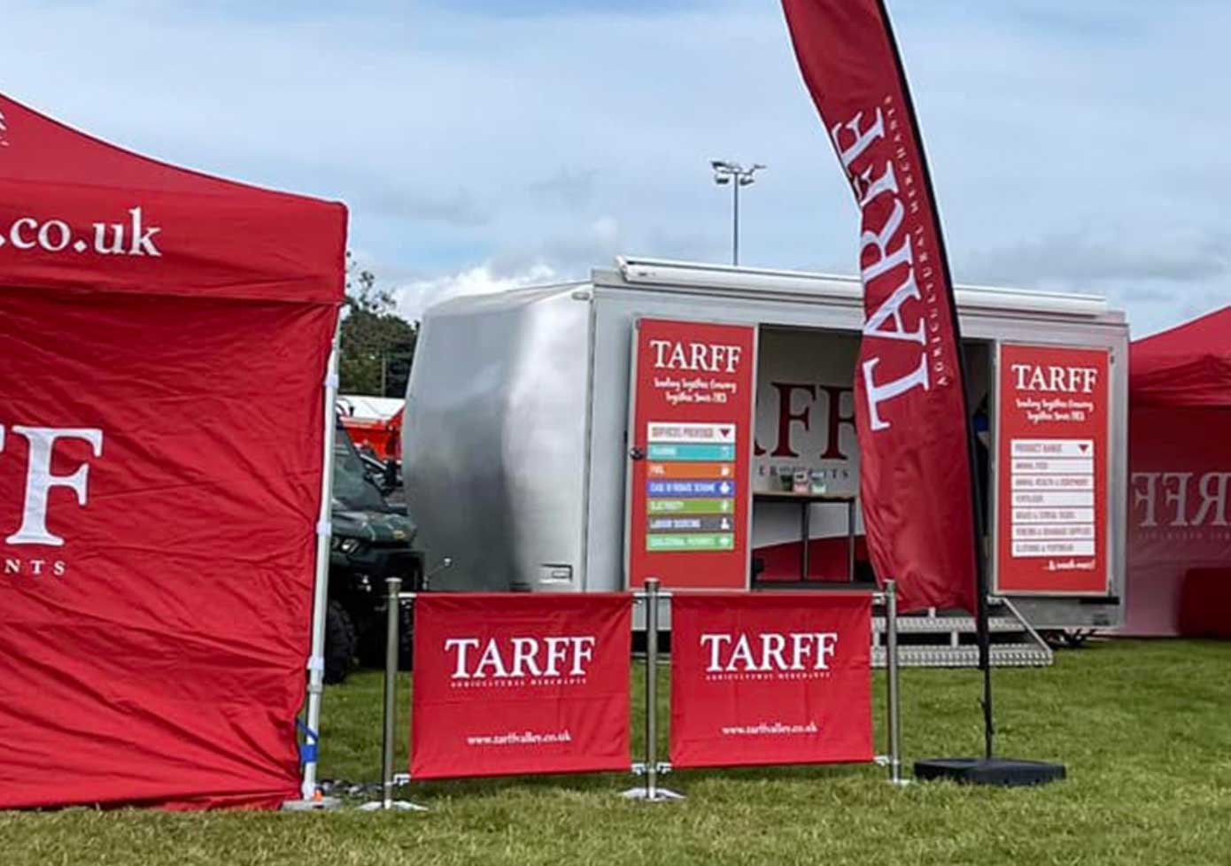 Placement strategy helps maximise impact. Many exhibitors position feather flags at the corners of a gazebo to frame the stand visually. Banners attach easily to canopy walls or nearby railings where they reinforce messaging. Additional flags placed along walkways guide foot traffic toward the booth.