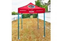 Thank you to Jane Racing for sending us this brilliant photo of their new 2m x 2m gazebo. A set of our plain red window walls were purchased for use in less favourable weather, so we ensured the printed red in the canopy would match. The blue anodised, heavy duty GZBO Hex50 frame compliments their colourful branding perfectly!