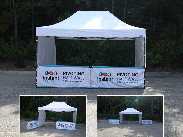 An industry first - introducing the highly versatile pivoting half wall system! Traditional half walls are fixed in position, meaning they are either on or off. Our unique design now allows you to switch the half wall position to suit different event space - take advantage of space to the front or to the side of your gazebo to attract more customers. For further information and pricing please call our friendly team on 0117 963 1668.