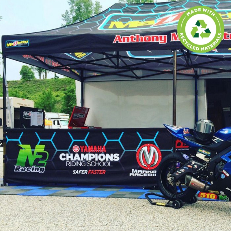 For our branded gazebo fabrics and branded table covers, we use a minimum of 95% recycled post-consumer polyester.