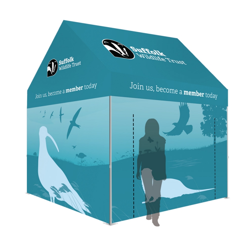 Full-height printed walls on all four sides, with a zipped door for easy access or complete privacy. - Weather-Ready Performance: