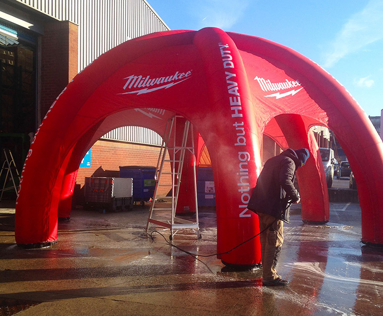 Your awning ships directly to your location, safely packed and ready to use. Setup is simple—most smaller frames go up in minutes with one or two people. Check that all parts are included, the print matches your proof, and the frame locks securely into place. After setup, you’re ready for your event.