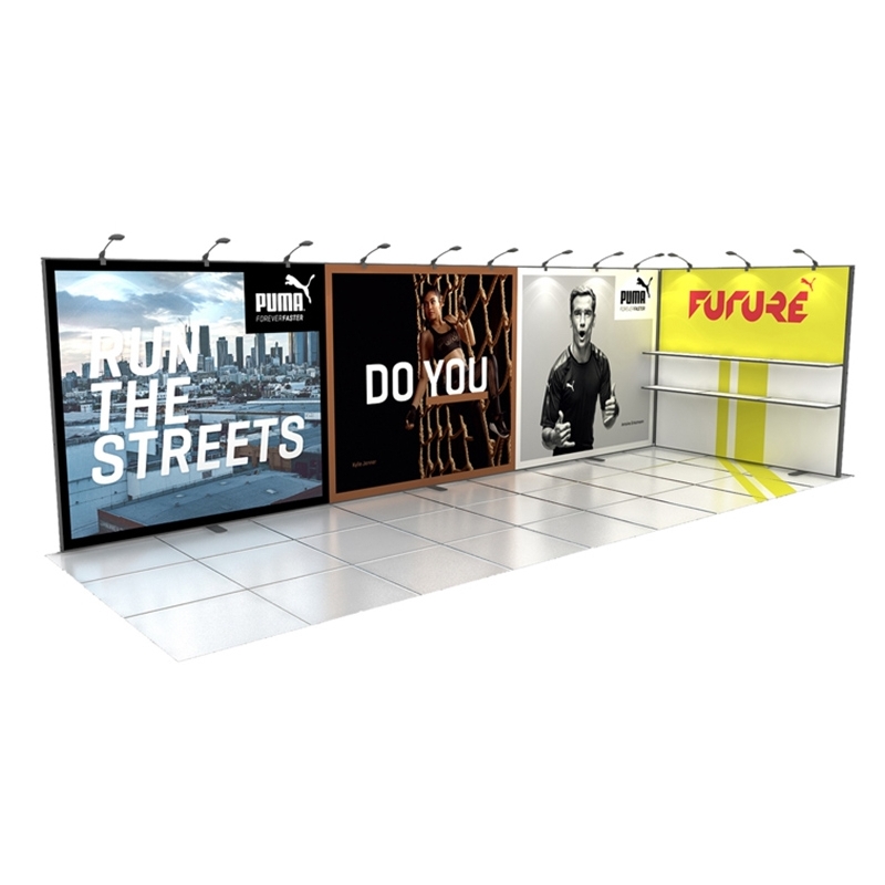 InstaLoc allows you to re-configure your framework to create different booth designs.